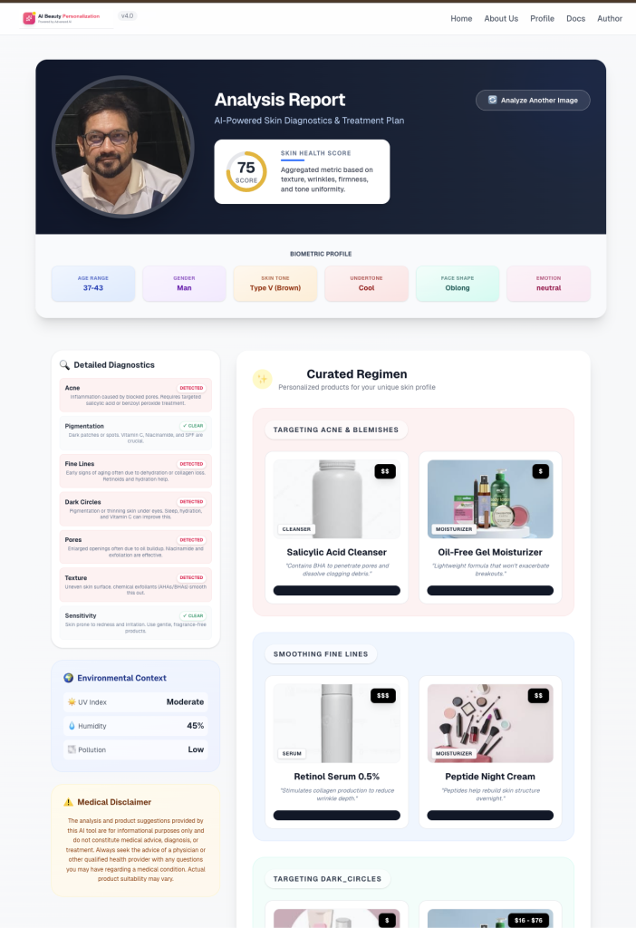 We are thrilled to unveil AIBPE V4.0 (AI Beauty Personalization Engine), a major leap forward in how we understand and care for our skin. By combining advanced computer vision with dermatological expertise, we’ve created a tool that gives you a personalized skin health assessment in seconds—right from your browser.